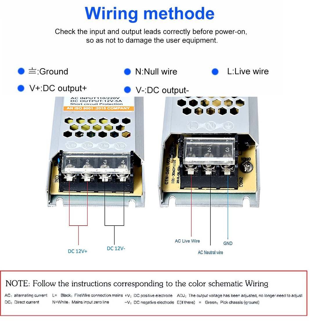 8. Do not short-circuit output if no output, please use off one minute re-energized.