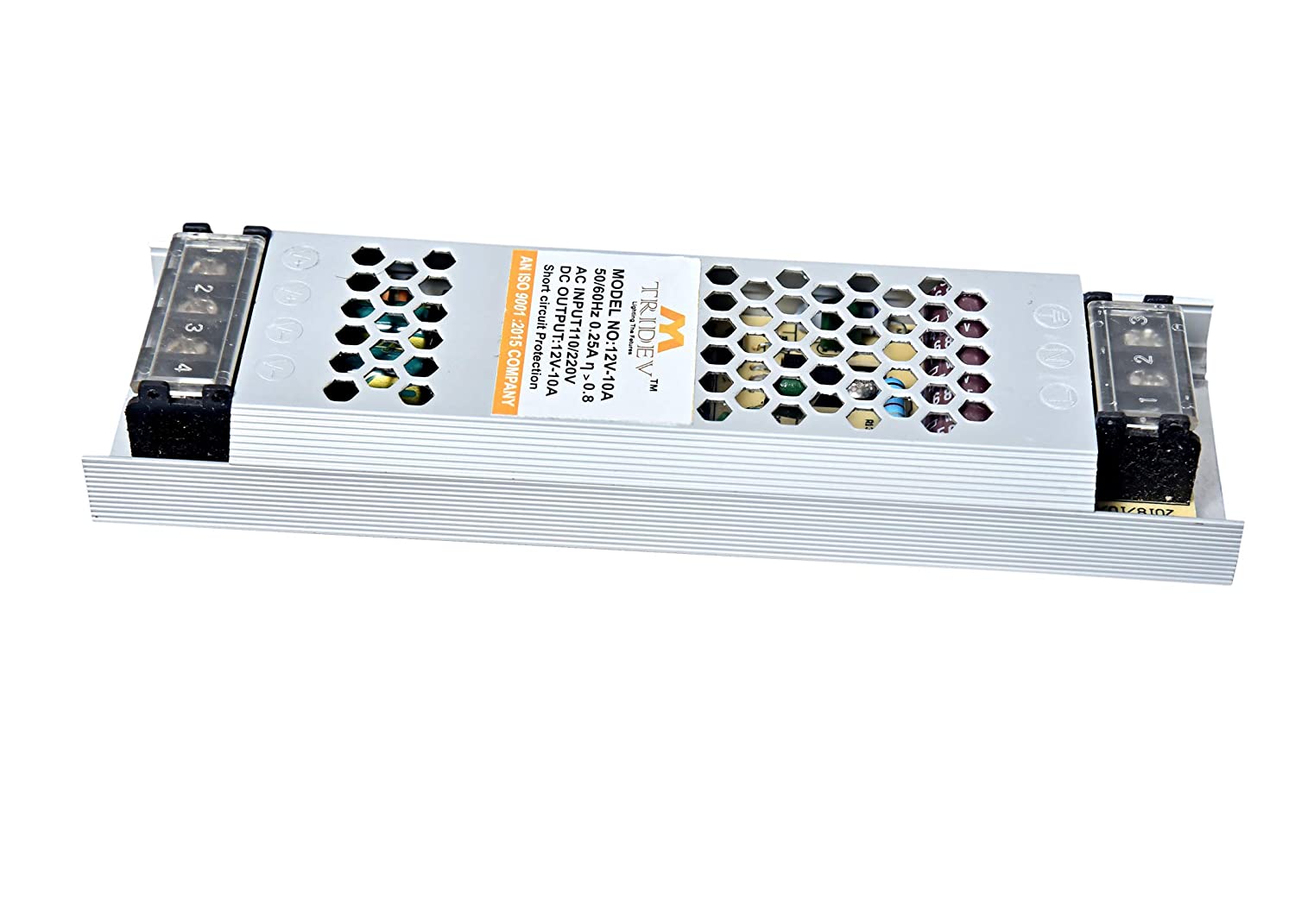 MY TRIDEV Ultra-Thin 12VOLT 10AMP 120WAT Switching Power Supply Universal Regulated Transformer (AC 110V-220V to DC 12V 10A)